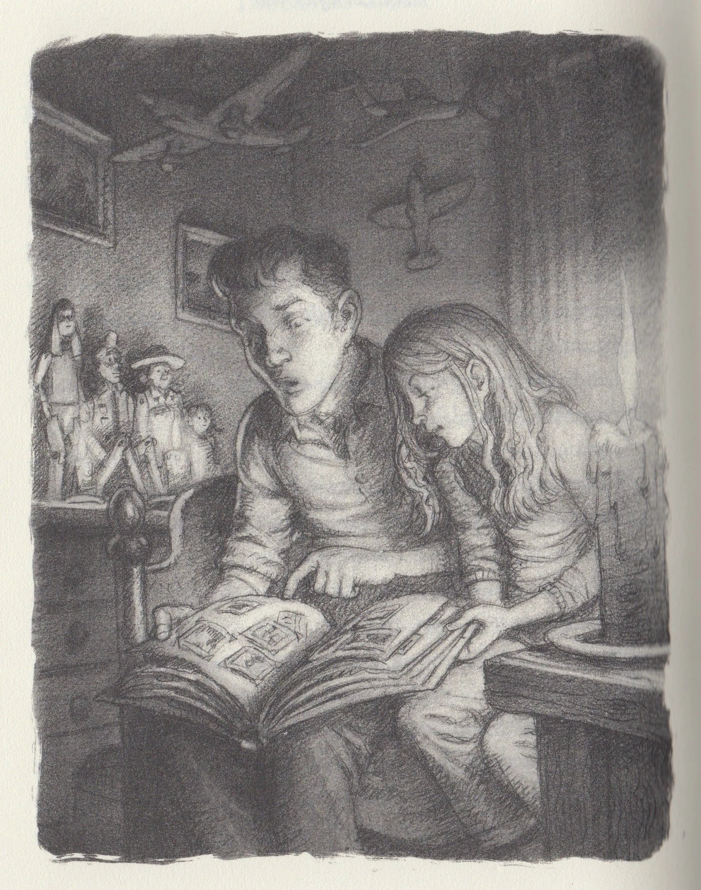 Puck seems to constantly show off, though he does so especially in front of Sabrina. Sabrina mostly denies any attraction to Puck, to her family and to herself. It is not until book eight when she finally admits to herself that Puck is her first crush. In the Council of Mirrors, their romantic relationship is at it's the most evident as Puck even announces to Henry that he is going to marry Sabrina one day and the two dance hand in hand at Mr. Seven and Morgan le Fay's wedding.